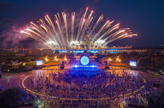 伴隨著文旅市場加速回暖,泰達(dá)航母充分發(fā)揮黨建引領(lǐng)作用,積極踐行新發(fā)展理念,搶抓文旅復(fù)蘇機(jī)遇期,以“紅色引擎”激活航母“夜經(jīng)濟(jì)”。在上級單位的大力支持下,航母緊跟暑期旅游熱,創(chuàng)新策劃打造“夜上津門˙焰遇航母”超大型沉浸式夏日焰火音樂節(jié),活動一經(jīng)推出,便成為濱海新區(qū)乃至天津市備受關(guān)注的文旅活動之一,為區(qū)域旅游注入了新活力。