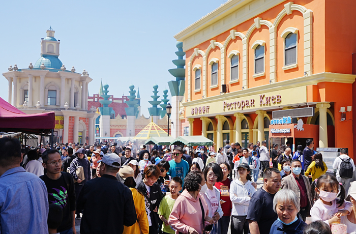 服務是旅游業的靈魂。后疫情時代,游客對于旅游服務提出了更高的要求。泰達航母積極踐行以游客為中心的服務理念,以高品質的服務演繹疫情后的首次“華麗轉身”。為給廣大游客提供一個煥然一新的游園環境,公司搶抓工期,修繕俄羅斯風情街,為風情街重新換上了亮麗的“新裝”。為營造“未出國門˙便入俄境”的獨特游覽氛圍,公司邀請金發碧眼的俄羅斯姑娘與小伙為游客獻上俄羅斯面包蘸鹽歡迎禮,并奉上獨具風情的俄羅斯歌舞表演,以最熱烈的氛圍迎接廣大游客的到來。